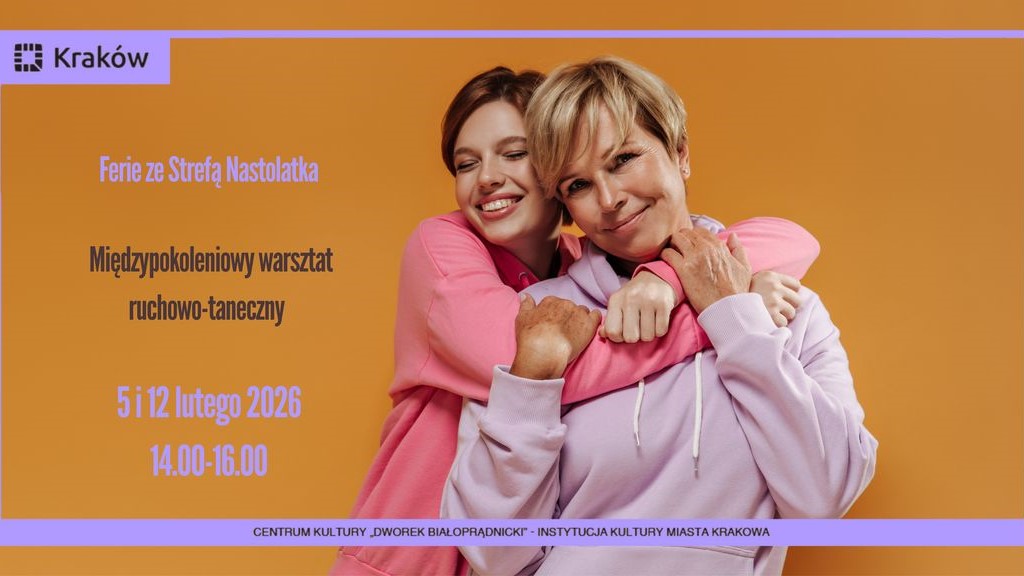 Centrum Kultury Dworek Białoprądnicki zaprasza na wyjątkowe spotkania w ramach ferii zimowych – międzypokoleniowe warsztaty ruchowo-taneczne w Strefie Nastolatka. Zajęcia poprowadzi Zofia Noworól-Ostrowska – psychoterapeutka, edukatorka oraz nauczycielka jogi i tańca improwizowanego.